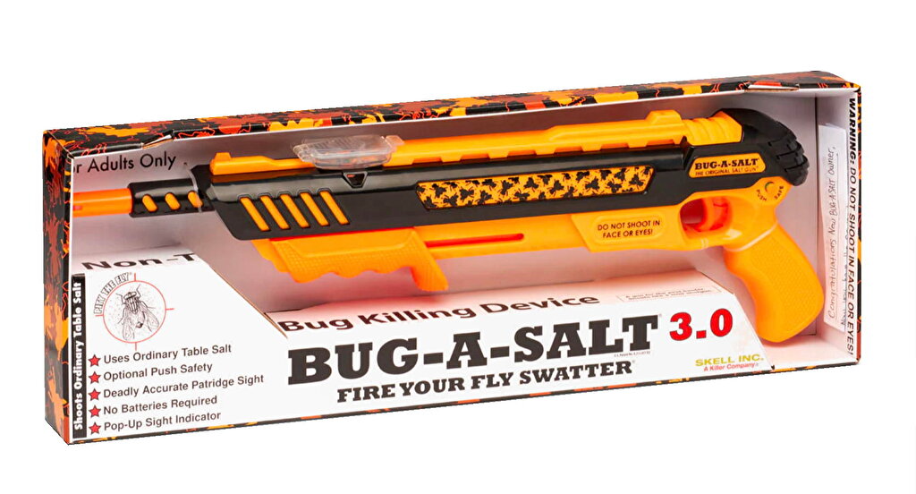 Bug-A-Salt är en helt giftfri metod att bekämpa flugor i och runt ditt hem. Gör det hela mindre tråkigt genom att använda detta gevär. Med hjälp av endast helt vanligt bordssalt kommer jakten på flugor att bli enkelt.