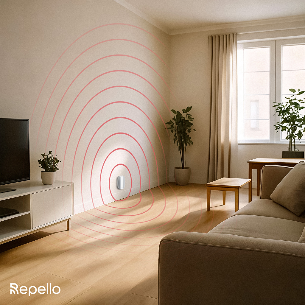 Repello är superlätt att installera och går att använda i allt ifrån vardagsrum, kök, sovrum, förråd, vind och garage.